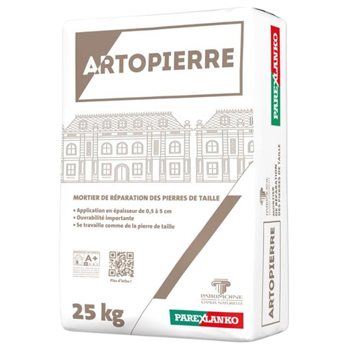 Mortier de réparation (grain fin) blanc ou teinté des pierres calcaires en épaisseur de 0,5 à 5 cm et de rejointoiement des pierres de taille